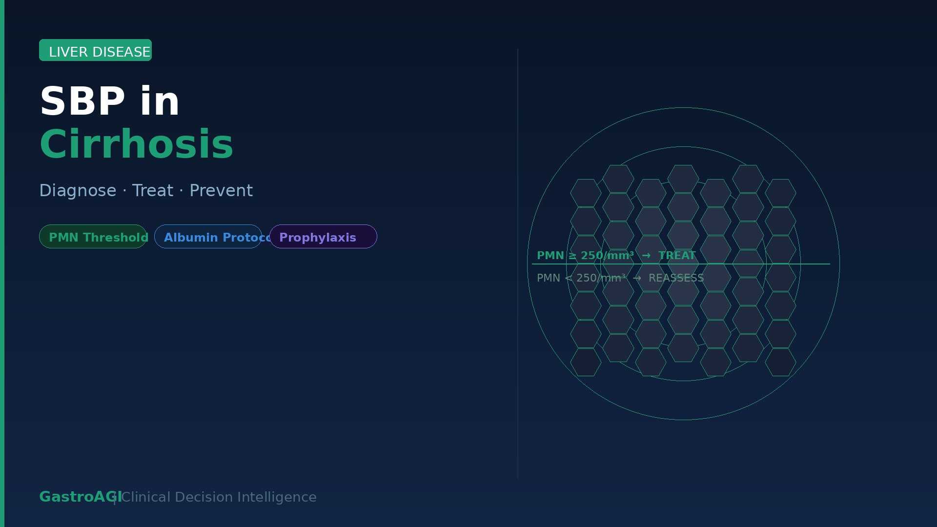 A 58-year-old man with Child-Pugh C alcoholic cirrhosis presents with low-grade fever, mild abdominal tenderness, and worsening encephalopathy. His ascites is long-standing, his last tap was six weeks ago, and his creatinine has crept up over 48 hours. Every finding points somewhere - and one of those somewhere-s is SBP. The clinical decision at this moment is not whether he has it. It's whether you are treating it fast enough.