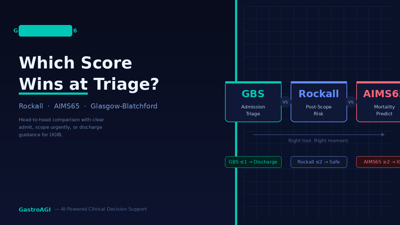 Rockall, AIMS65, or Glasgow-Blatchford - which score to use for UGIB in 2026? A head-to-head breakdown with clear admit, scope urgently, or discharge guidance.